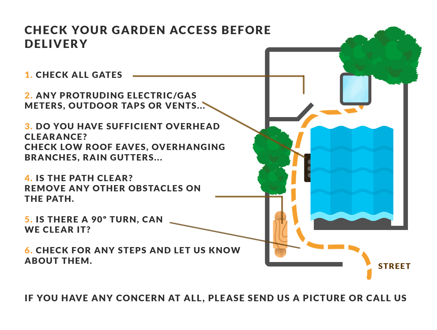 It is the duty of the consumer to arrange an appropriate crane or lifting equipment if required for safe delivery. When the spa is being lifted, the obligation for safety and any damages that occur to the spa or home is the responsibility of the crane or lift operator.
